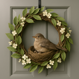 Happy Mother’s Day! We also had nesters in our wreath last year – little wrens. The problem is, there’s not another easy way for human visitors to enter the house, si O regretfully did not put up the wreath this year.