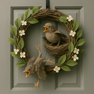 Ha. But it’s so fun to watch the romance and resultant nesting. This is my spring wreath with lots of space for a young family. We’ve got a scrubbing technique down. 🙃