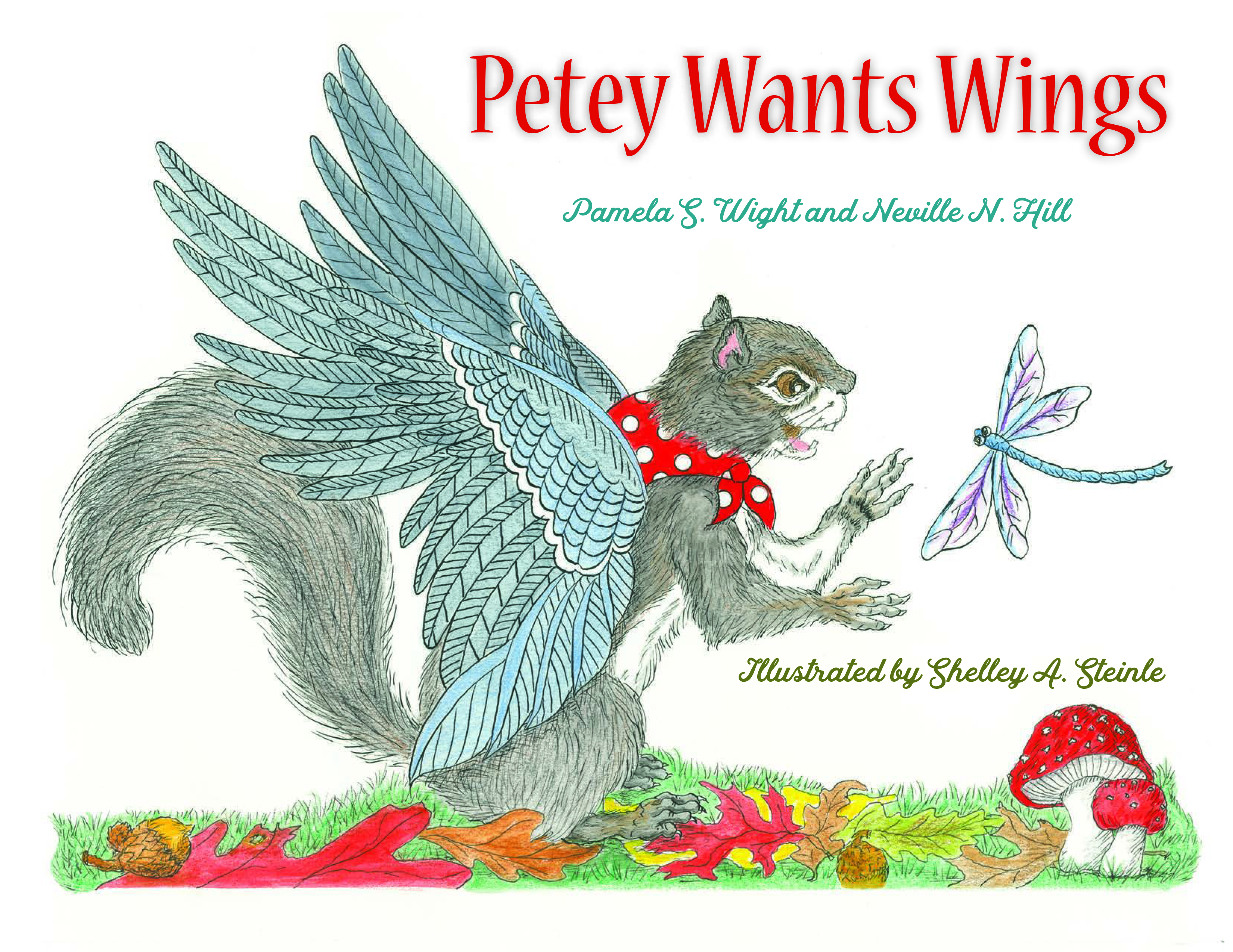 Petey the squirrel wants wings. Despite his great life as a squirrel with many friends, Petey is unhappy. He knows that if he could fly like his bird friend Bessie, then his life would be complete. A magical dragonfly grants Petey his wish, but only if he gives up something important. Through misadventures and surprises, Petey discovers that changing himself to be like someone else won’t bring him joy. In fact, taking away his own unique skills could be his downfall. By the end of the tale, Petey discovers how special it is …. to be himself.