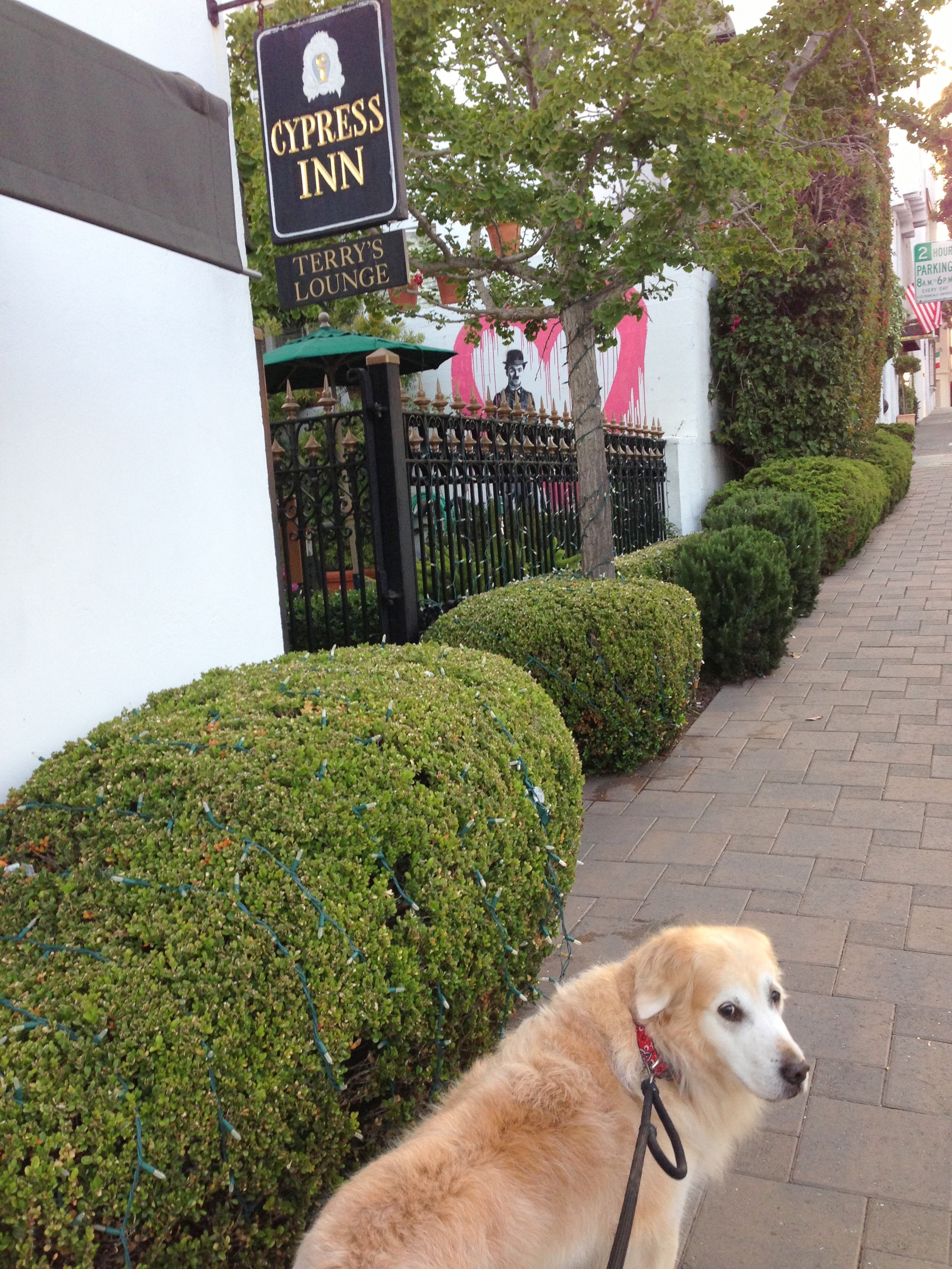 doug house, Cypress InnMy man and I celebrate our anniversary this month by escaping to Carmel-by-the-Sea, “a seaside town…in the pine forest.” Romantic sounding, yes? But to add even more romance, we decide to bring Henry, the dog.